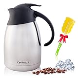 Thermal Coffee Carafe 1.5L/51Oz - Double Wall Vacuum Insulated BPA Free Stainless Steel Easy Server Beverage Butler Pitcher - Lab-Tested Hot and Cold Serving Thermos Jug With FREE Brush and eBook