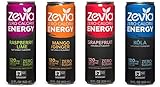 Zevia Zero Calorie Energy Drink Naturally Sweetened Energy Drink, Variety Pack, (12) 12 Ounce Cans; Mango Ginger, Raspberry Lime, Grapefruit, and Cola-flavored Caffeinated Beverages with No Sugar