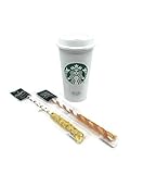 Starbucks Reusable Classic Travel To Go Coffee Grande Tumbler/Cup with Lid 16oz And 2 Starbucks Flavored Iced Tea Straws : Pineapple and Caramel Brulee (3 Items)